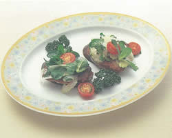 特徴 : 福島県内産の3種類の食肉を使い、野菜やキノコ類を組み合わせ1つのお惣菜で、バラ ンスよく栄養がとれるよう工夫しました。 東京オリンピックの五輪をイメージし、彩り良く盛り付けました。