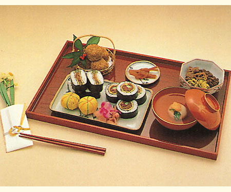 一口で香川が味わえます。尚、器は讃岐漆器の拭き慴塗りです。 (讃岐牛、讃岐うどん、醤油豆、金時人参、まんば)
