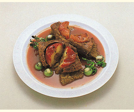 甘いフルーツトマトを使い、和牛のうまみとヘルシーなおからをミックスさせ、みかんソースでさっぱり仕上げた一品です。