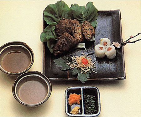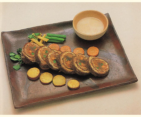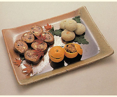 山形県産山形牛と干柿にくるみを入れて焼き上げました。 |
