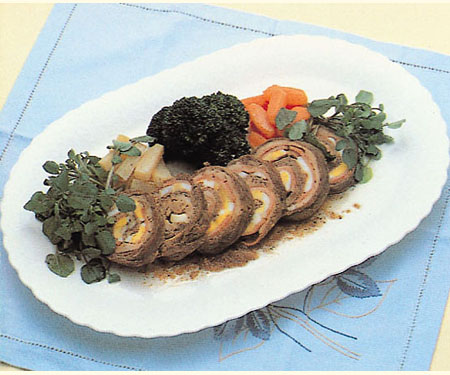脂肪控えめ、きのこたっぷりの肉料理です。 |