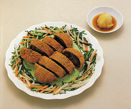 肉に野菜、海藻などを混ぜた手作りの味 |