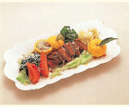 ヨーグルトと果物であっさりとした牛肉料理 |