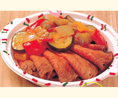 牛肉と野菜をサンドした和風洋風のたれ賞味 |