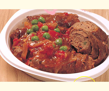 トマト風味のソースと牛肉は、絶妙のコンビです。