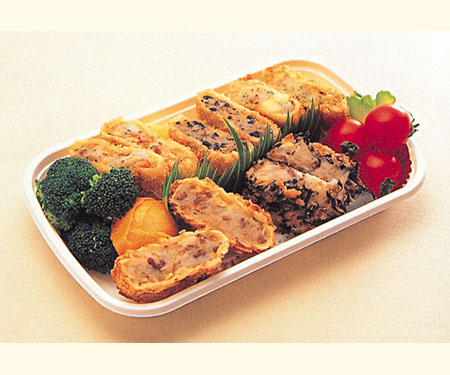 中に挟むジャガイモや茄子に火を通す方法として素揚げを採用していますが、これはフライヤーを お持ちのお肉