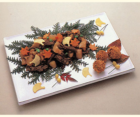 フルーツの優しい味でお肉の苦手な人にも食べやすく、生活習慣病予防にもなり、また、高齢者の低栄養予防にもなります。大いに肉を食べて健康長寿を。 <審査委員からのひとこと>はフルーツ?意外な組 み合わせですが、フルーツの甘さ、香りが肉を引き立てています。(沢辺)