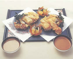 酢れんこんを餃子の皮で挟み、肉で巻いて揚げ、味わった時の食感をポイントに仕上げました。 COMMENT いかにも主婦らしい発想の無駄のない料理。揚げた餃子の皮の感触と甘酸っぱいあん、ゆずの香りが絶妙です。(小川)
