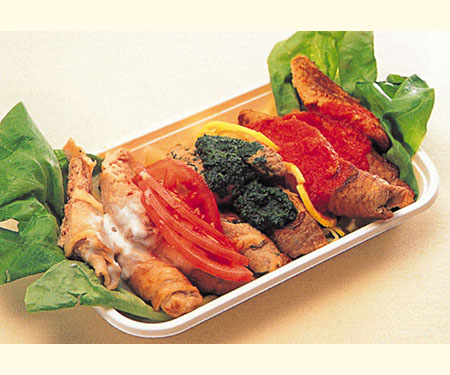 比較的低需要部位(豚もも肉)を使用します。 世界各国の香辛料を使い分けることにより、風味のバラエティを楽しめます。 色彩りが豊かです。 焼かずにパン粉をつけて揚げてもおいしくいただけます。