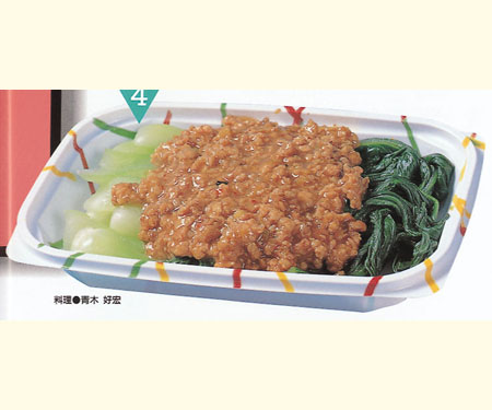 豚もも肉でクルミ入りのしっとり肉みそを包みました。 柔らかく調理した豚もも肉と香ばしいクルミの食感は、ごはんが進むおいしさです。 ≪コメント≫豚肉特有の臭みがなく、柔らかい肉質が特徴の「桃豚」と秋田県産食材の特性を活かして美味しくなりました。