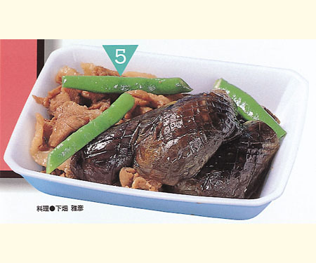 特徴 : ナスをくりぬいて富山ポークを詰めました。中華味で冷めてもおいしくお総菜にぴったりの 一品です。 美味しいと感じる5味(塩味・辛味・酸味・旨味・甘味)をすべて取り入れ、お肉と野菜のバ ランスを考えました。
