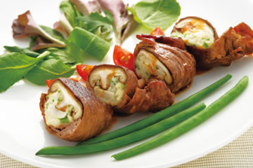 酢飯に京野菜と牛肉のこま切れを混ぜ、豚肉で巻いて米ぬかで揚げました。サッパリした食感で、ボリューム満点です。 <審査委員からのひとこと>