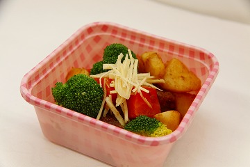 地域食材のブロッコリー、人参、じゃがいもは新鮮で国産のスペアリブは安全であるため安心していただけます。肉と野菜をおいしくとれる惣菜にしました。
